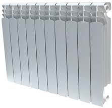 · Биметаллические радиаторы состоят из стального стержня и корпуса, сделанного из алюминия, и соединяют достоинства этих двух металлов. Они надежны в эксплуатации: выдерживают давление в 50 атмосфер и могут служить до 20 лет. Биметаллические радиаторы можно ставить в общественных зданиях и на предприятиях.